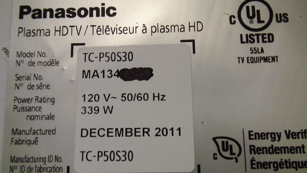 THIS PART PULLED FROM WORKING PANASONIC PLASMA TV 50", MODEL # TC-P50ST30, AND UNIT WORKING COMPATIBLE WITH ALL MODEL # BELOW.