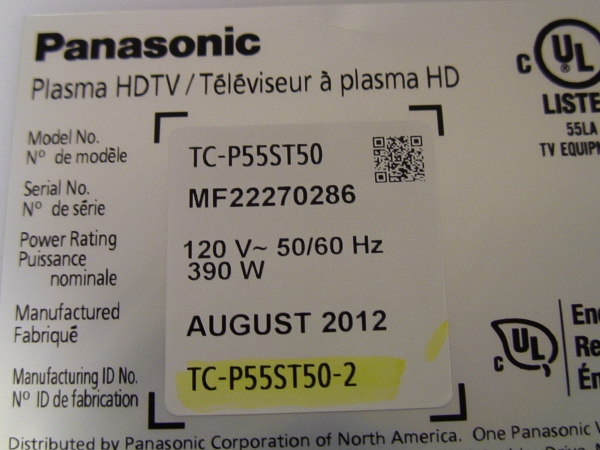 THIS PART WAS PULLED FROM PANASONIC 55" PLASMA TV , MODEL # TC-P55ST50, (TC-P55ST50-2), UNIT WORKING COMPATIBLE ALL MODEL # BELOW.