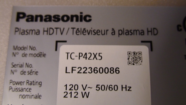 THIS PART PULLED FROM PANASONIC 42" PLASMA TV, MODEL # TC-P42X5, UNIT WORKING COMPATIBLE ALL MODEL # BELOW.