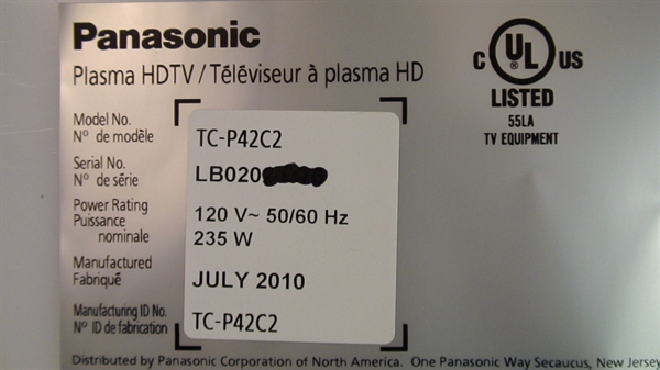 THIS PART PULLED FROM WORKING 42" PANASONIC PLASMA TV, MODEL # TC-P42C2, UNIT WORKING COMPATIBLE ALL MODEL # BELOW.