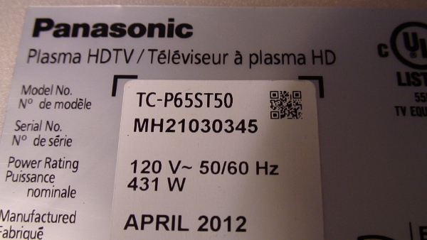 THIS PART WAS PULLED FROM PANASONIC 65" PLASMA TV MODEL # TC-P65ST50, UNIT WORKING COMPATIBLE ALL MODEL # BELOW.