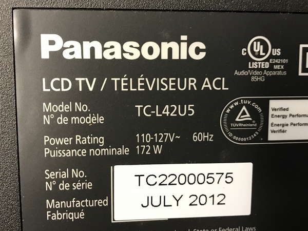 THIS PART WAS PULLED FROM PANASONIC 42" LCD TV, MODEL # TC-L42U5.