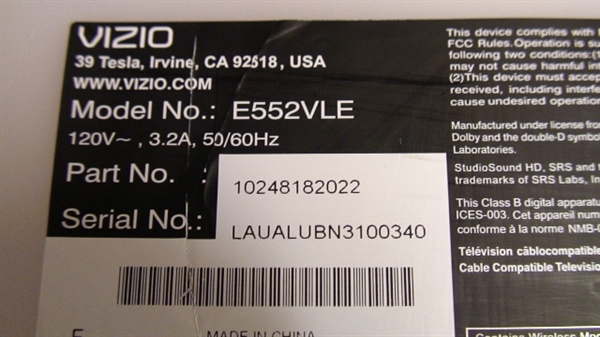 THIS PART PULLED FROM WORKING 55" LCD TV , MODEL # E552VLE.