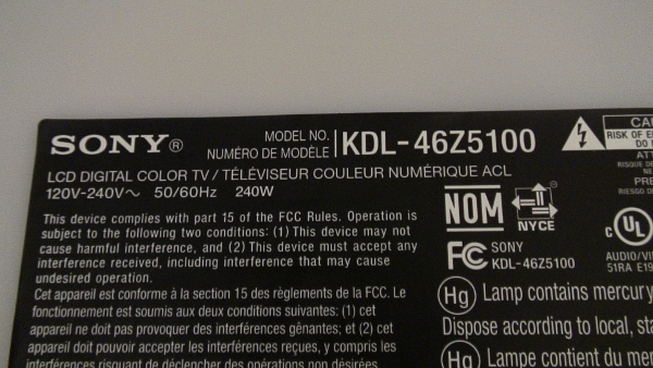 V8Z110B11, SONY LIGHT LOGO, KDL-46Z5100 LAMP LOGO, NEB, KL46