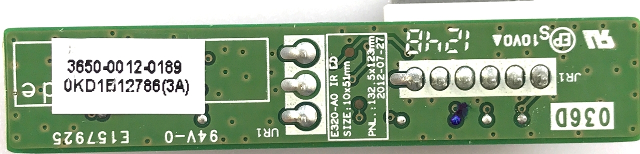 Vizio 50" LED TV IR Sensor: 3650-0012-0189, 0171-1671-1023, 3650-0012-0189R, E500I-A0, E420D-A0, E500D-A0
