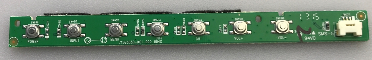 VIZIO 50" LED TV Keypad Module: 715G5650-K01-000-004S, P33T0397-1201A, KEPFCXC7, E500I-A1, E500IA1