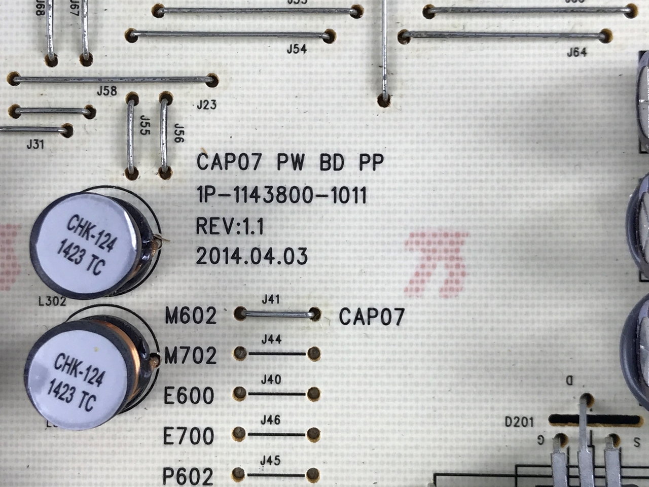 Vizio 60" LED TV Power Supply Board: 09-60CAP070-00, 1P-1143800-1011, S600FH2-1, Thermistor NTC-2.5D-15x, SCK-2R58, M602I-B3, M602IB3
