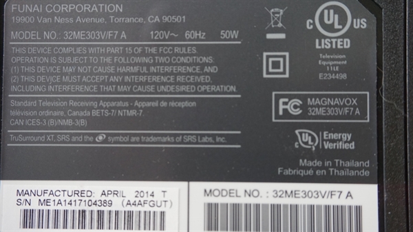 WAC172LTE005, 32ME303V/F7, 39ME313V/F7, 39ME413V/F7, 32ME403V/F7, LF391EM4, LF320EM4A, 39ME313V/F7A, 32ME303V/F7A, MAGNAVOX 32 LED TV POWER CORD