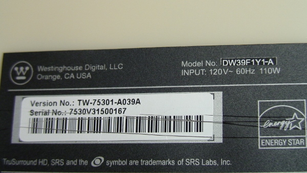 - Westinghouse 39" LED TV Main Board, Model # DW39F1Y1-A, VERSION No; TW-75301-A039A