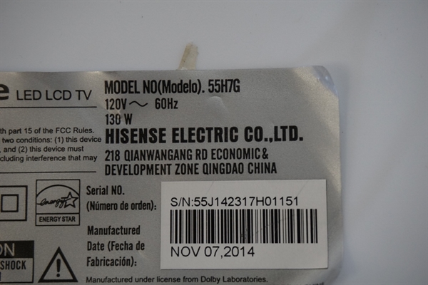 THIS PART PULLED FROM DAMAGE 55" HISENSE LED TV MODEL # 55H7G.