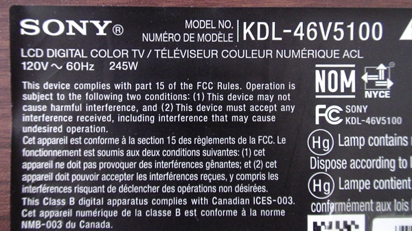 THIS PART WAS PULLED FROM SONY 46" LCD, MODEL # KDL-46V5100, UNIT WORKING COMPATIBLE ALL MODEL # BELOW.